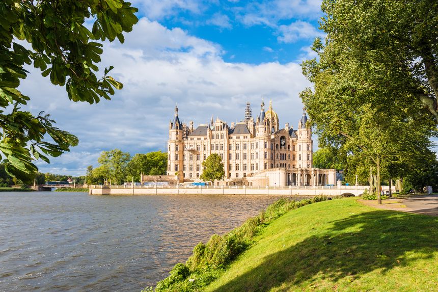 Also known as the Mecklenburg Lake Plateau, in the north-eastern state of Mecklenburg West Pomerania, a large number of lakes are connected by canals. The capital, Schwerin, is a very welcoming town and the market square is always lively. But it is the castle which marries gothic with baroque architecture that is the town's main attraction. The region's beautiful natural park borders Lake Muritz, and its abundant wildlife make this an area conducive to walking and hiking.