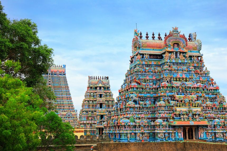 Discover South India and the region of Tamil Nadu. At the heart of Tamil culture, the great city of Madurai attracts hundreds of pilgrims each year. Discover the Sri Meenakshi Temple and learn about the religious culture of this spectacular temple that is dedicated to Meenakshi, avatar of the goddess Parvati and her husband Shiva. Surrounded by gopurams, monumental towers typical of Dravidian architecture, these pyramid structures are designed with intricate sculptures of Indian gods and goddesses. One can easily lose track of time observing the details of their fascinating facades.