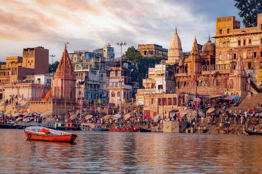 Varanasi, otherwise known as Benares, lies on the bank of the Ganges in the state of Uttar Pradesh and is the heart of Hindu culture. Here, each person believes in karma and that their next life depends on how they behave in the present life. To break away from the cycle of reincarnation and access nirvana, one must first be cremated on the banks of the sacred river. The holy city of Varanasi is one of the oldest cities in the world and has been inhabited for more than 4000 years. Lose yourself in the midst of the busy marketplace or in the labyrinth of back alleys and taste a chai tea with sweet milk. Dawn or sunset are perfect moments for taking a boat out onto the Ganges. Stroll alongside the river or down the ghats, those huge riverfront steps that lead down to the banks. Ceremonies take place every day to celebrate and pray to Ganga, the goddess of the river accompanied by mesmerizing music.