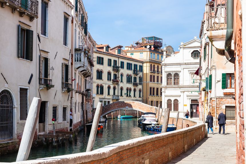 The Grand Canal can only be crossed on foot in four places, thanks to the Costituzione (Piazzale Roma), Scalzi (in front of the station), Rialto and Accademia bridges. But it can also be crossed for a small fee by traghetti, collective gondolas where you travel standing up with the locals. The best way to enjoy the show (and the most economical) is to take line 1 of the vaporetto from the station to Saint Mark's Square. Some important buildings: the Ca 'Vendramin Calergi , where Richard Wagner died, the Baroque Ca' Pesaro palace with its diamond-pointed facades, the delicate Ca 'd'Oro', which echoes the Gothic architecture of the Doge palace, the Ca 'Foscari , in the curve of the Canal, a privileged position, the Ca 'Rezzonico' , seat of the 18th century museum, facing Palazzo Grassi , the last of the grand palaces built on the Grand Canal, and finally the truncated Venier dei Leoni palace.