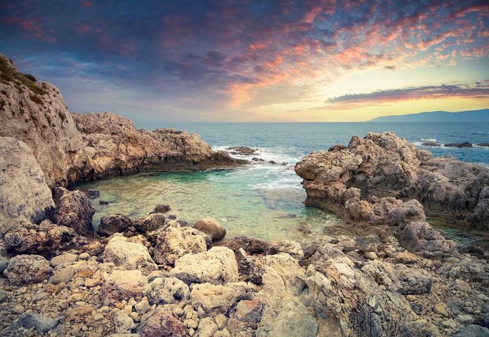 A spectacular white rock formation mingling with the lapping waters of Mediterranean sea. The beautiful colour of the water simply pales into insignificance. Here, climbing up the rock staircase is easy and will afford you magnificent views of the bay.