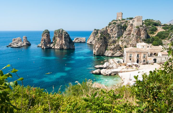 With its high rocks rising from the deliciously turquoise blue waters, the spiaggia dei Faraglioni beach in Scopello will take you to another world.