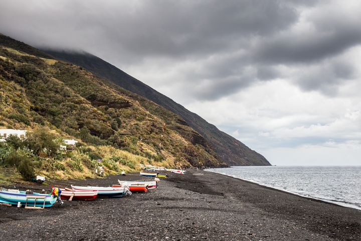 A somewhat novel beach with a long expanse of black sand that only serves to intensify the colour intensity of the surrounding blue seas.