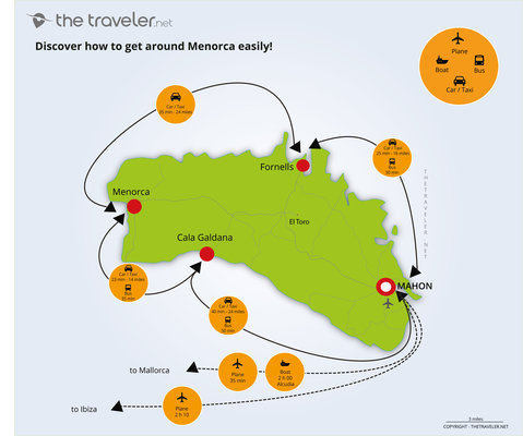 The bus network is well established. However, as for car journeys, it principally links Mahon and Ciutadella vie the main road. The journey takes about an hour. It takes around 35 minutes from Ciutadella to Cala Galdena. On the other hand, journeys between coastal towns are difficult - expect them to take at least 2 hours. Take a bike instead!