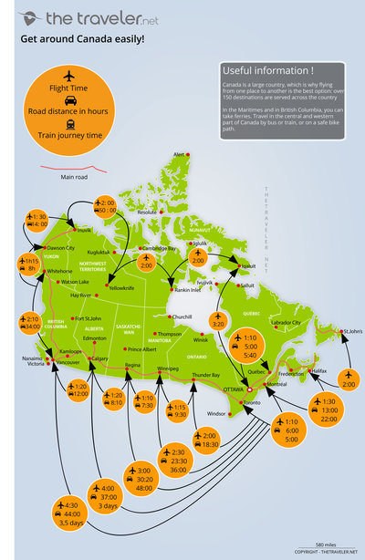Unsurprisingly, flying from one city to another is the best way to travel long distances in Canada. Expect at least a one-hour flight between each major airport, and 5 hours to fly across the country. Air Canada flies to 64 Canadian cities. Cars, trains and buses are also very popular for discovering the countryside while saving money. Bicycle touring is also very popular and is an excellent way to visit Edmonton, Montreal, Quebec City, Ottawa, Toronto and Vancouver. In Montreal, buy a metro or bus ticket and the city will be yours! A 3-day pass will give you unlimited access to public transportation for about 19$. Vancouver’s public transportation is also very convenient, although the city-centre can be visited on foot. Ferries and sea buses will allow you to explore the surrounding islands. As for the centre and far north of the country, please refer to our map for an overview of these regions. Then, compare flight, train, bus and boat offers to find the best itinerary