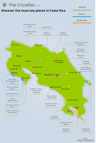 Discover Costa Rica like you've never seen it before! I offer you 4 new and printable tourist maps. A trip trip to Costa Rica, is the opportunity to discover astonishing landscapes and treasured regions with the most incredible fauna and flora. Use our distance map to easily organize your trips and don't miss the secret spots map. Discover our maps to plan your trip in the best possible way.