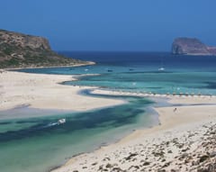 Crete is the largest island in Greece and full of natural and cultural treasures: ancient ruins, idyllic beaches, beautiful countryside and impressive mountains. Eastern Crete is the quieter and more arid part of the island. The Lassithi Plateau’s fields, orchards and windmills is spectacular countryside to discover. Around Agios Nikolaos are pretty bays and the magnificent Spinalonga peninsula where you can enjoy long lazy days. In the north, the Heraklion area is very busy with its famous Temple of Knossos and archaeological museum. Opt for the south of this region if you want to the calm of its vineyards and traditional little villages. The fortress and minarets dominate the bay of Rethymnon, a pretty and historic town. Picturesque villages can be found on the Messara Plain, a fertile area to the south. Western Crete is the greener and more mountainous part of the island. There are beautiful beaches and the Balos Lagoon in the north-west. Chania has retained its historic charm and is one of the most attractive towns on the island. At the island’s centre are the Samaria Gorge and the majestic White Mountains which rise to 2,450 metres. Both are essential for keen hikers.