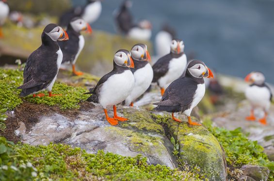 There are many sites to observe puffins in Iceland, but none of them allows easier and more extensive observation than Latrabjarg: two million of these tiny creatures are nestled in the rock walls of the cliffs. Situated in the extreme West of the West Fjords, this natural site of stunning beauty is, in fact, a cap with cliffs stretching up to 10 miles and with an average height of 400 metres. Photograph lovers, you will be in heaven! Not to mention the spectacular view on the cliffs and on the Snaefellsjokull by clear weather, a great number of bird species are observable such as Fulmars, gulls, Alca torda penguins and murre. All the cliffs can be walked along a path and seals can be seen basking on the rocks below.