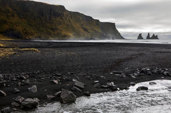 NatureBlack sand beach in Vik, fishing villageWalking on a black sand beach