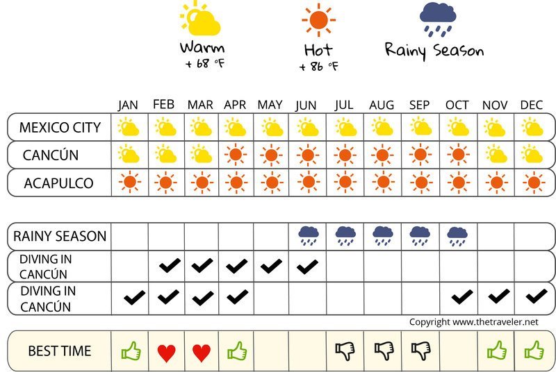 When should you go to Mexico? The months from October to April are the best months for your trip to Mexico as the days during this time are sunny and warm with an average temperature of 77°F.