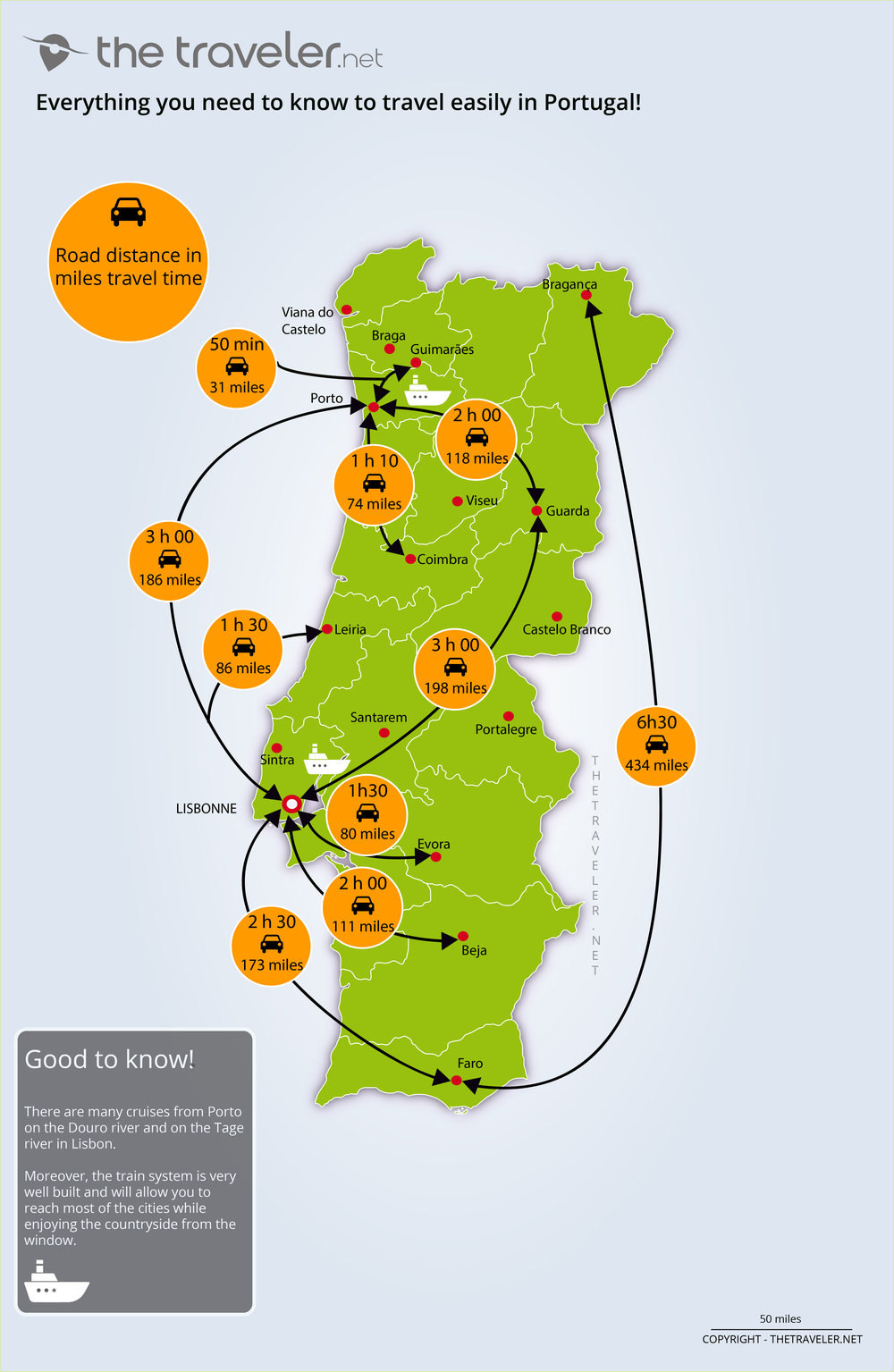 Par les airs, en train ou en voiture, le Portugal est facilement accessible depuis la France. Des vols quotidiens et directs sont assurés par de nombreuses compagnies comme Easy Jet, Vueling, TAP Air Portugal ou Air France, comptez environ 2h30 pour vous rendre à Lisbonne depuis Paris. Sur place, le réseau routier et ferroviaire est très développé et propose de nombreuses options. Par exemple, le “One Country Portugal Pass d’InterRail” vous permet de voyager sans limites (88€ par personne pour 8 jours). Enfin, à noter que pour louer une voiture il faut avoir au minimum 21ans, parfois 25ans selon les compagnies.