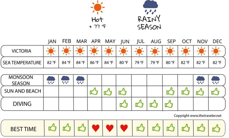 | Sea temperature | 82° | 84° | 84° | 86° | 84° | 80° | 78° | 78° | 80° | 82° | 82° | 82° |